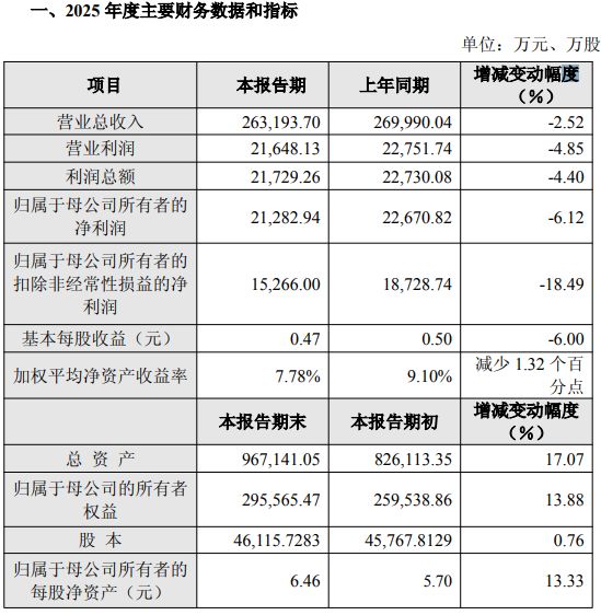 财务数据显示,截至2025年末,公司总资产达96.71亿元,较期初增长17.07%,归属母公司所有者权益为29.56亿元,较期初增长13.88%,资产质量保持稳健。