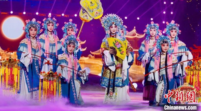 开场表演《水韵梅香》在泰州老街呈现出当地丰富多彩的民俗文化与浓厚的元宵氛围。《元夕上灯》中,来自京剧、淮剧、黄梅戏等剧种的戏曲名家联袂登场,通过富有各剧种特色的“报灯名”烘托出元宵华灯璀璨、万家团圆的喜乐气氛。