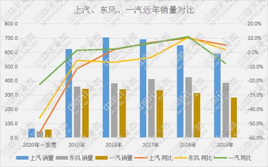 反观一汽,近两年的表现却是愈发突出,实现逆势小幅增长。作为 “共和国长子”,一汽有着辉煌的历史,开创了中国汽车工业的先河。从1953年动工建设起一直到“十五”末期,一直都是中国汽车行业的领导者。