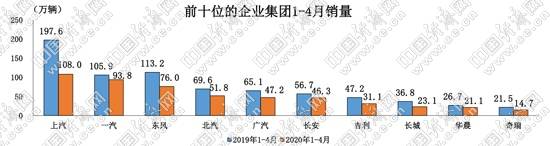 然而,从前4月累计销量来看,上汽销量降幅虽有所收窄,但同比下滑依然高达45.34%,远高于位居其后的一汽集团和东风集团。同时,上汽与一汽的销量差距也仅有14.2万辆;而在一季度时,两者的差距甚至不足6万辆,上汽的同比增速更是出现“腰斩”。