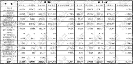 上汽2019年产销快报