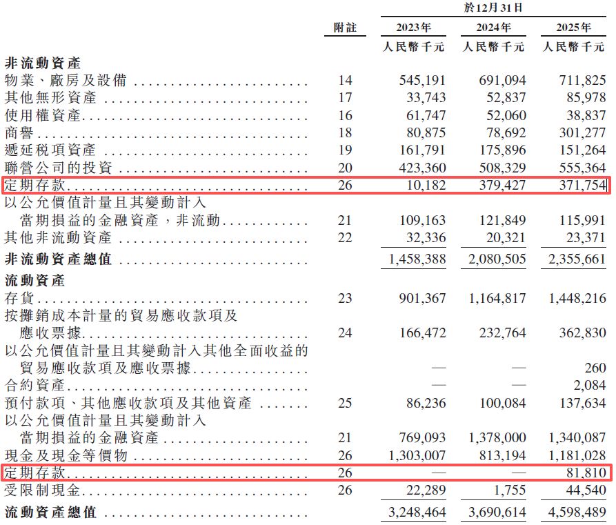 圣邦股份的资产负债表与现金流量表现呈现出资金充裕的特征。招股书显示,公司在报告期内积累了较大规模的现金储备。截至各报告期末,公司持有的现金及现金等价物分别达到13.03亿元、8.13亿元和11.81亿元。截至2025年末,公司账面上持有总计4.54亿元的定期存款,其中包括8181万元的流动定期存款与3.72亿元的非流动定期存款。