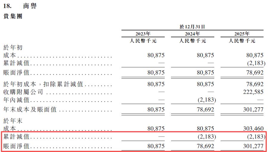 招股书显示,圣邦股份的商誉在2023年和2024年分别维持在8087.5万元和7869.2万元的水平。在2024年度,公司对原有的部分商誉确认了218.3万元的减值亏损,表明其过往的并购资产在实际整合运营中存在一定的减值先例。到了2025年末,账面商誉余额突然升至3.01亿元。