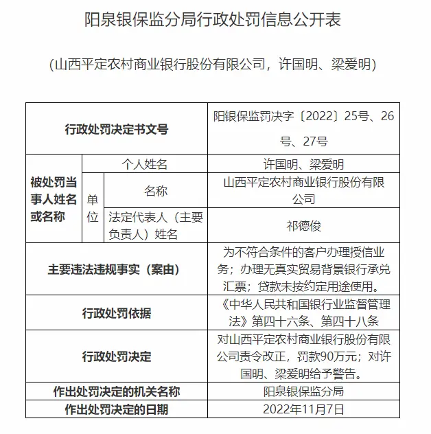 原标题:银行财眼|山西平定农商行被罚90万元因贷款未按约定用途使用等违规