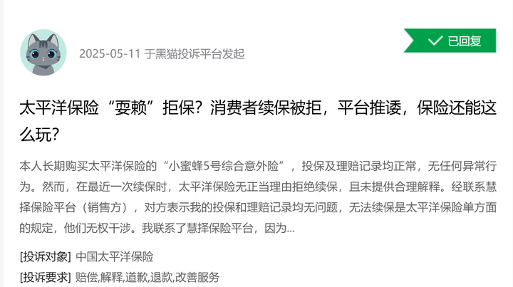 黑猫投诉:客服隐瞒关键信息致拒赔
