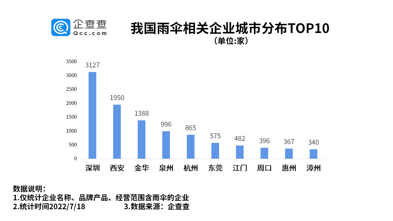 3、雨伞相关企业城市分布:深圳最多